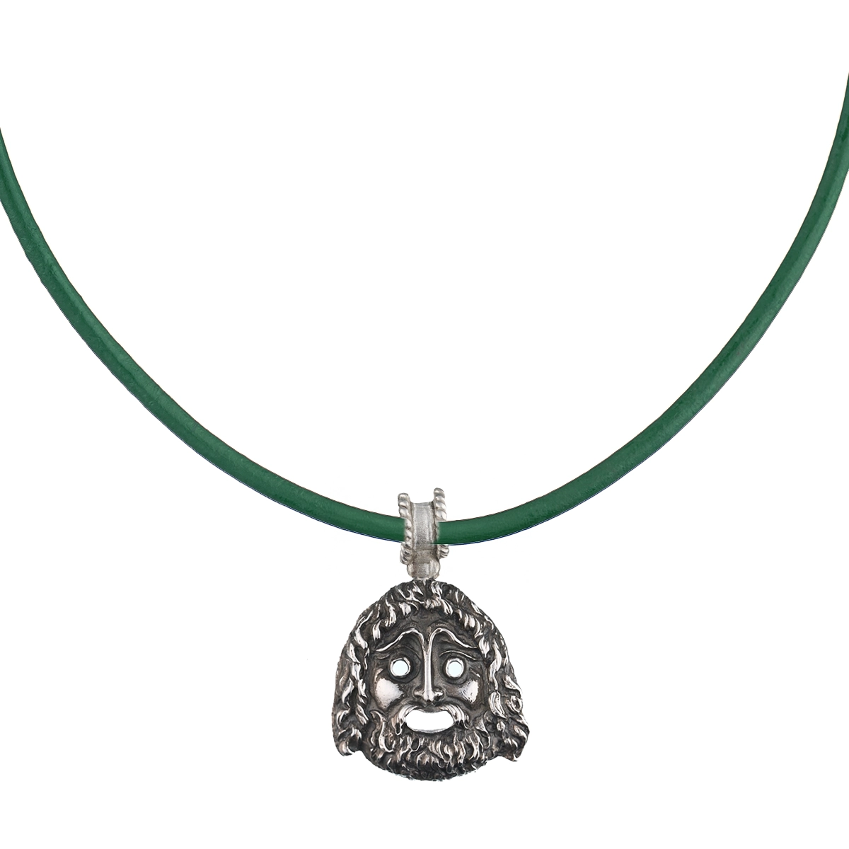 Collana in cuoio con ciondolo 1° misura “Maschera Eroe” realizzato in argento 925/°°.